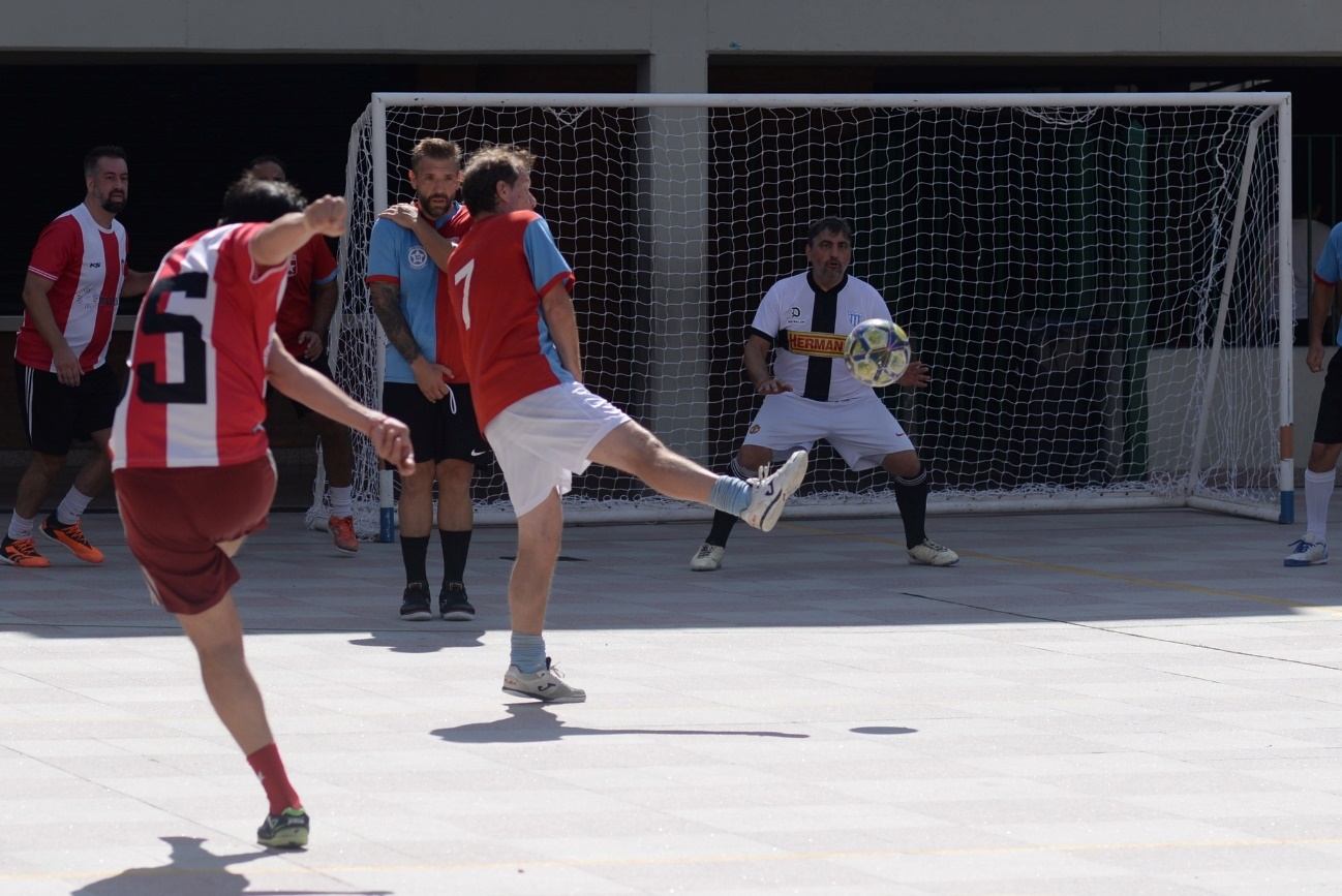 Inicia el partido y salimos con un cambio táctico totalmente novedoso para nosotros en post de aprovechar los dos cracks que teníamos en el Plantel. Maxi Hertig, goleador de la Senior el Torneo pasado, arranco jugando atrás con Ale Ozores y conmigo. Dejando al Pocha y Ale Alonso de mitad de cancha para arriba. Pareció más improvisado de lo que realmente era dado que Maxi hace rato juega abajo en otros Torneos fuera del Exa. En esos primeros 10 minutos se vio lo mejor nuestro en el primer tiempo. Creo que fuimos muy superiores a Sonmo gracias a un gran trabajo colectivo y encima lo reflejamos en el tanteador con dos goles de Ale Ozores. El primero tras un puntazo de media distancia que se clavó al ángulo y el segundo tras una gran transición de defensa ataque y muy buena descarga del Pocha para dejarlo mano a mano y defina cruzado. Encima a ellos en ese tramo se les lesiono el Galle Sesto tras chocar con Pocha (según el Galle ya le había tirado en la entrada en calor) y se quedan sin un jugador clave. Hasta pudimos haber metido alguno más, pero Ale Alonso no estuvo fino en la definición. Promediando la etapa, con los cambios de ambos lados, el partido cambio. Sonmo se puso el traje de campeón y poco a poco nos metió contra nuestro arco. Tuvieron un par muy claras para descontar, pero Facu estaba muy seguro bajo los tres palos. Cuando parecía que nos llevábamos una ventaja clave de dos al descanso, tiran un pelotazo para Apicella quien anticipa a Facu en el salto y la pone justa por arriba del arquero para poner el 2-1. Pitazo del juez y a descansar.