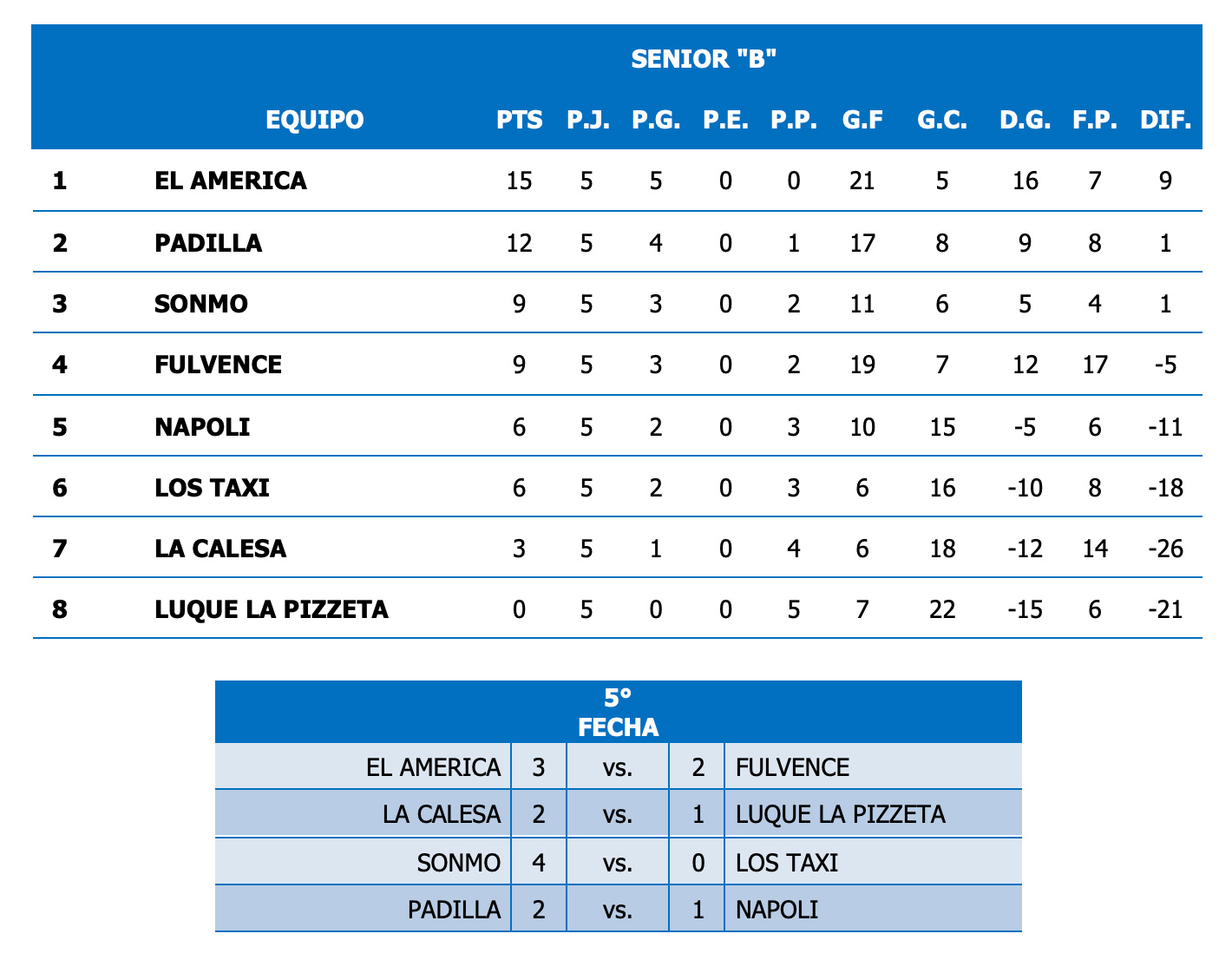 Triunfo merecido porque estuvieron más finos que nosotros en los detalles aunque tal vez lo más justo hubiese sido el empate. Creo se noto mucho la diferencia entre un Equipo en construcción (nosotros) y uno que juega juntos hace 30 años y en la Senior desde que inicio.  También creo que tenemos que replantearnos el tema cambios y la posición de Maxi en partidos donde tal vez no aporta tanto desde atrás. La derrota nos deja con la soga al cuello si queremos meternos entre los primeros 3: tenemos que ganar si  o si los dos partidos que nos quedan.  Y encima la próxima nos toca enfrentar nada más y nada menos que a un Padilla que viene segundo y en racha. Definitivamente una FINAL. El América por su lado ya se aseguro la clasificación y en la próxima enfrentará a un Taxi que se juega la última ficha por intentar una milagrosa clasificación entre los 3.