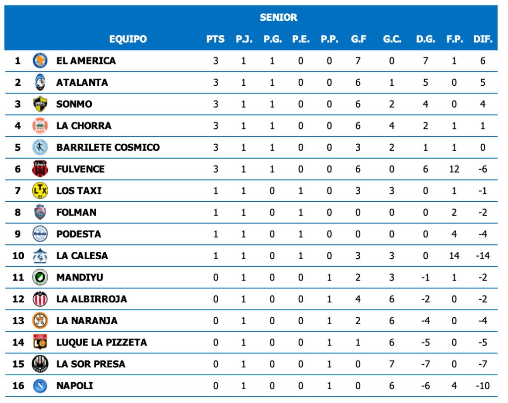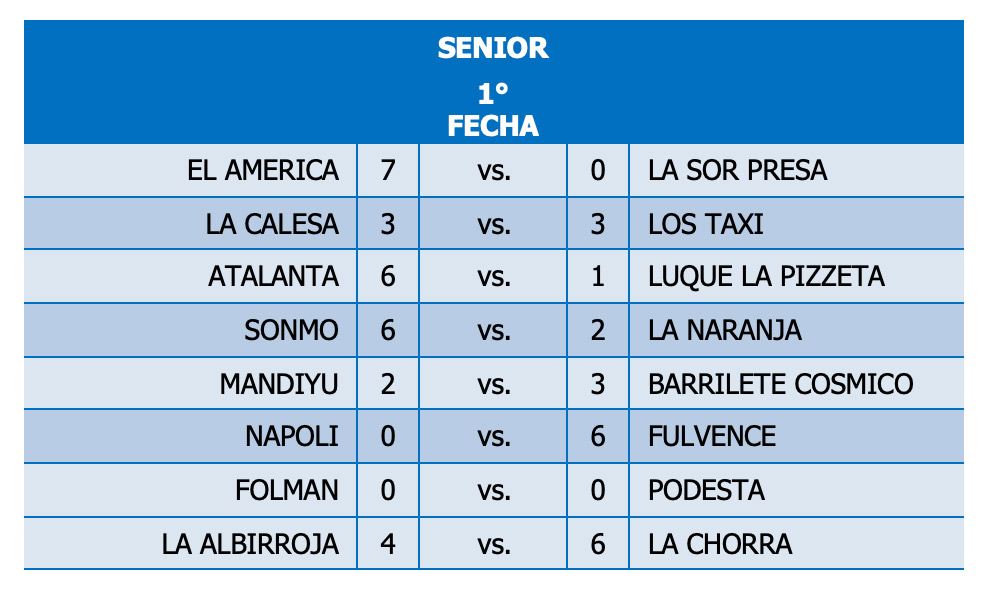 Triunfo merecido ya que dominamos de la mano de nuestra dupla de ataque la mayoría del partido. Además, gran regreso de Sanfe que si se mantiene en este nivel (similar al que tuvo la primera mitad del año) da para ilusionarse. Lo negativo sin dudas la expulsión de Ale que de mínima se pierde el próximo partido. Ventajas que no podemos dar si queremos pelear arriba una categoría tan pareja como creo va a ser esta Senior. Por el lado de ellos creo que si van a ser 11 o 12 todos los partidos y van a priorizar jugar todos, va a ser dificil que puedan pelear arriba. En cambio, si llegan a priorizar poner lo mejor en cancha, OJO con este Napoli. Ahora se viene La Chorra, rival que no enfrentamos en el primer semestre, pero sabemos están en buen nivel y tienen una gran dupla ofensiva como Siritto-Pechacek.