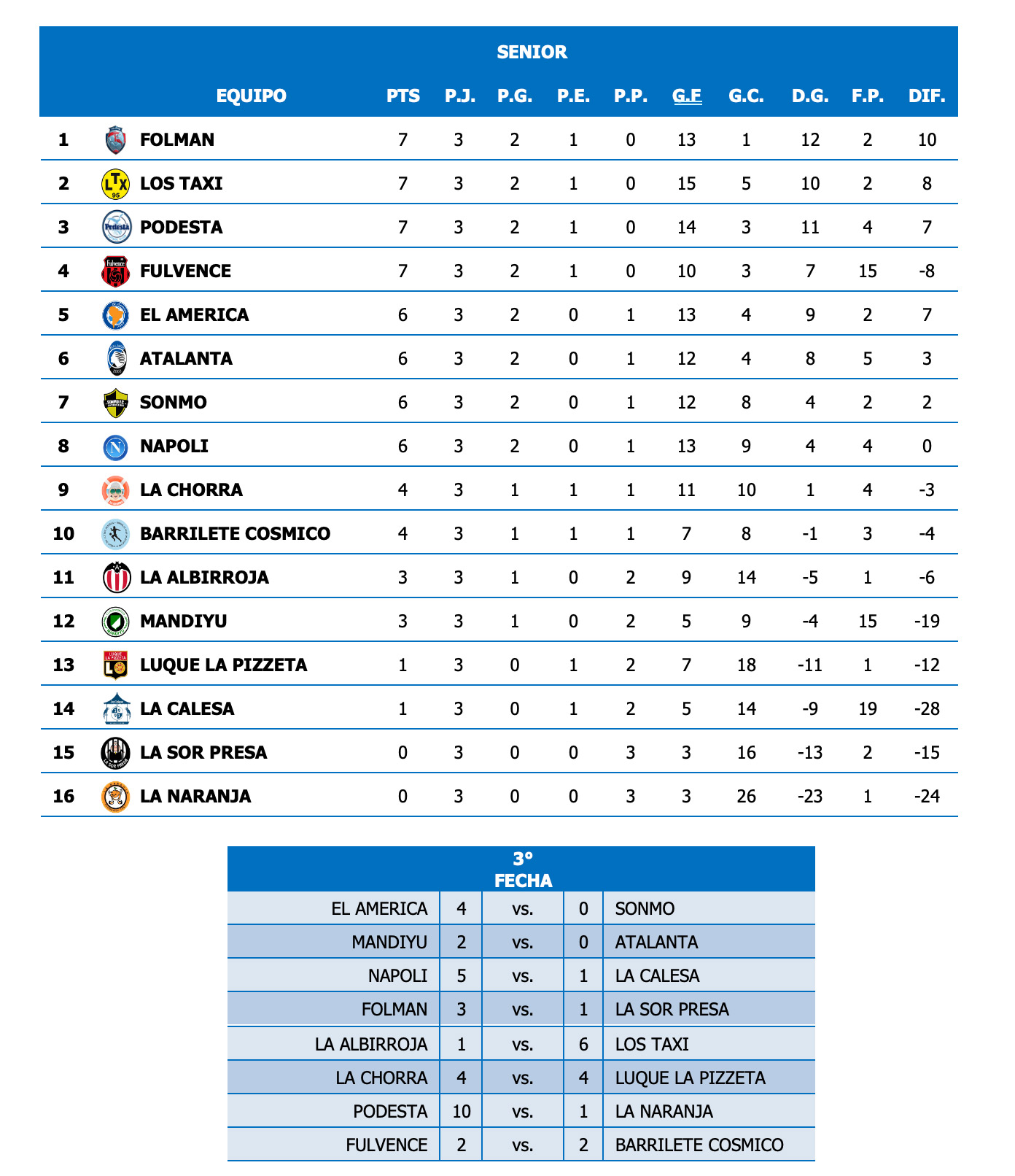 En los partidos anteriores el talón de Aquiles de La Sor Presa habían sido los segundos tiempos. Tras buenas primeros tiempos, los cambios los complicaban. Bueno esto cambio. Un poco por mérito propio y otro por errores del rival. FolMan sufrió lo que en su historia se conoce como el “Teorema del Facha”. Hace muchos años cuando jugaba en las categorías libres y se llamaba Folbak jugo un campeonato muy justo de plantel. Eso hacía que Ale Fachin, mundialmente conocido como el Facha, jugara de media punta titular. Su contextura física, robusta que algunos rivales confundían con gordura. Hizo muchos goles. Lo dejaban solo y el sacudía el puntinazo. ¿Por qué pasaba esto? Por el teorema de que “al gordo no se lo marca”. Esto se enuncia en que el jugador rival ante una contextura similar o real de gordura no considera necesario marcar a tu jugador con esas características. Esto es lo que paso el sábado con Mariano Ruggeri, quien cuando ingreso casi no fue molestado por la defensa azul. Y con ese detalle el partido cambio.